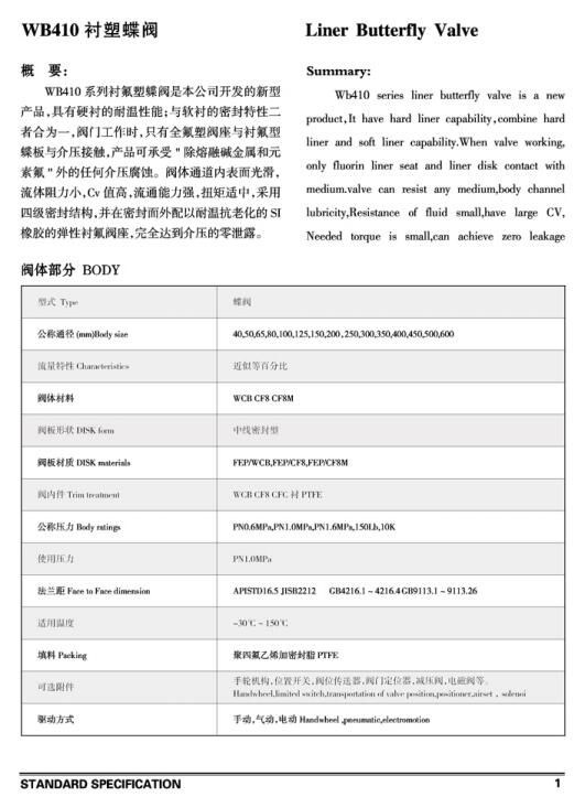 WB410襯塑蝶閥
